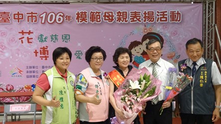 此外,今日南區公所也舉辦「台中市106年模範母親表揚」,會中除表揚南區24位模範母親代表外,還有「花獻慈恩 博(柏)愛長青 模範母親家屬獻花」活動,場面隆重溫馨。
