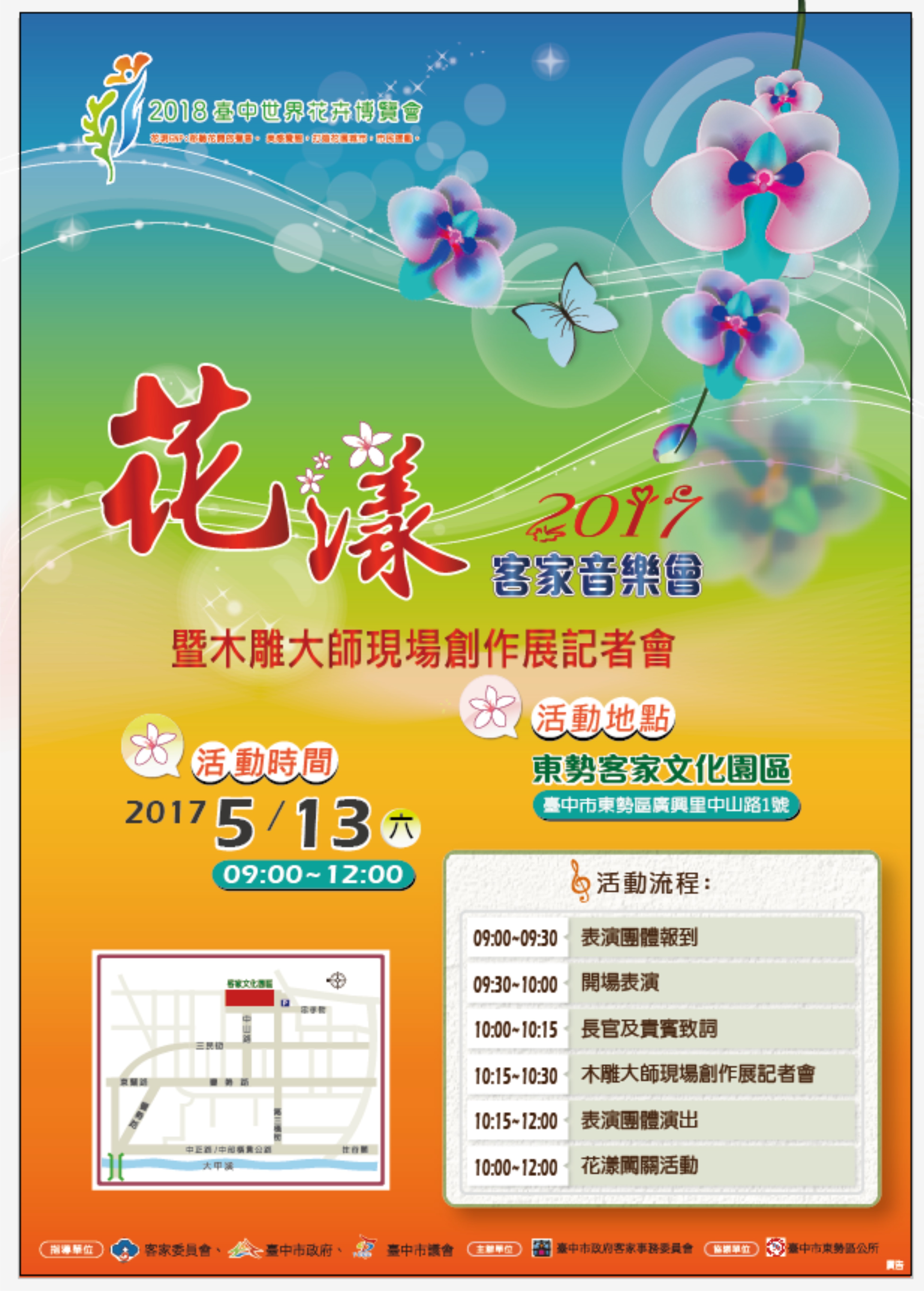市府客委會主委劉宏基表示,希望透過音樂、歌謠等形式發揚客家文化,讓台三線上的大埔客家展現出濃濃的浪漫氛圍,也希冀透過客家藝文豐富多元的展演,讓台中客庄活動呈現不一樣的風采。(5/10*14)*客家事務委員會