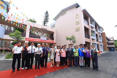 台中市東峰國中舊有的西華樓興建於民國57年,長久以來校舍老舊已不堪使用,市長林佳龍從擔任立法委員期間,就協助學校爭取新校舍工程經費,在多位民意代表共同努力下,獲得市府教育局補助5,000萬元,工程於今年1月底竣工,並於今(11)日舉行落成典禮。林市長說,新校舍完工對他來說是了卻了一樁心事,也象徵學校的重生,相信未來教育會辦得更好。