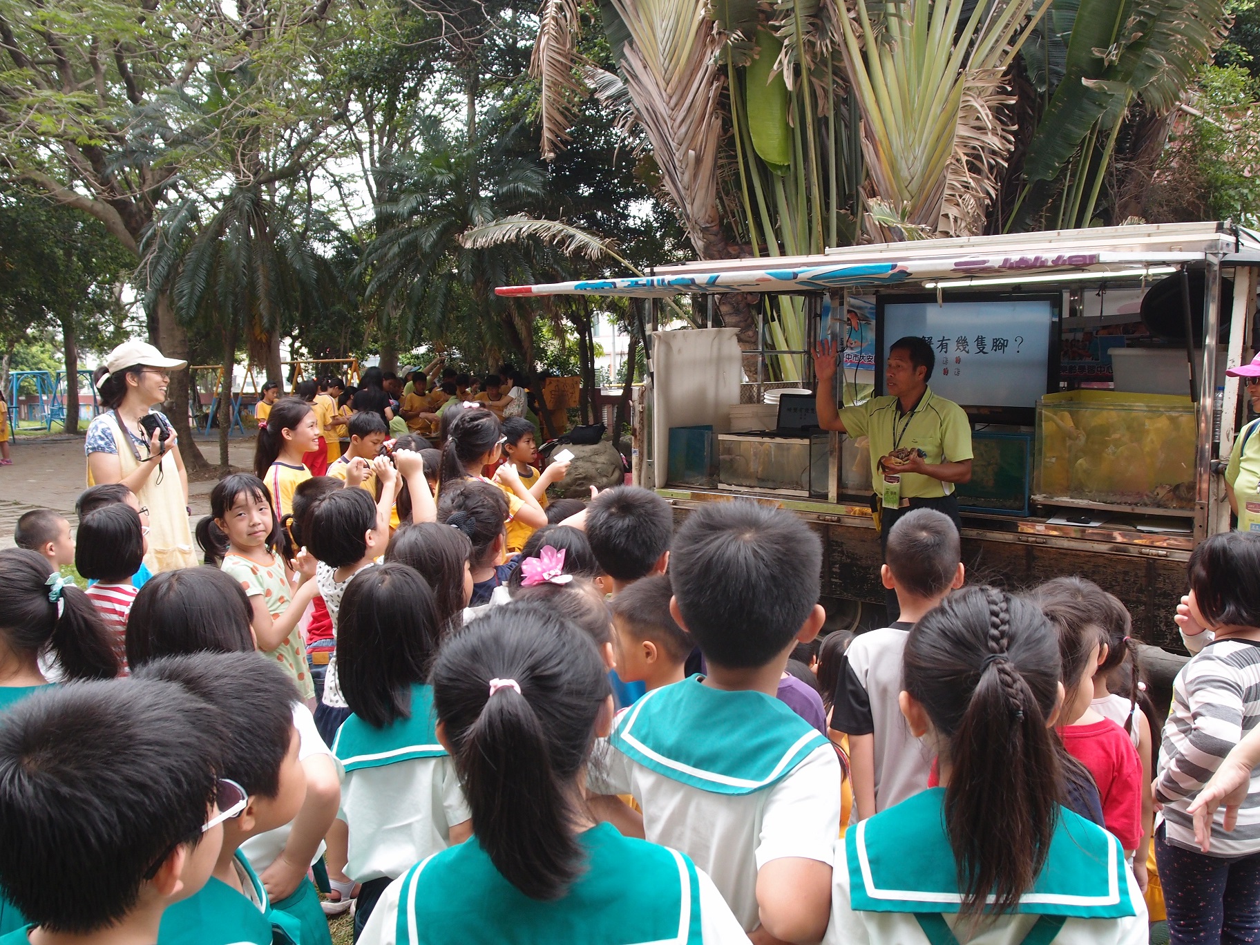 台中市政府環境教育行動專車啟程!首場活動昨(11)日在清水區大秀國小熱鬧展開,環保局特別邀請燈籠魚戲劇社表演,同時更導入時下最夯的桌遊,藉由遊戲,吸引小朋友了解包括生態保育、歷史文化及資源再利用等環境議題,盼讓正確觀念及知識向下紮根。