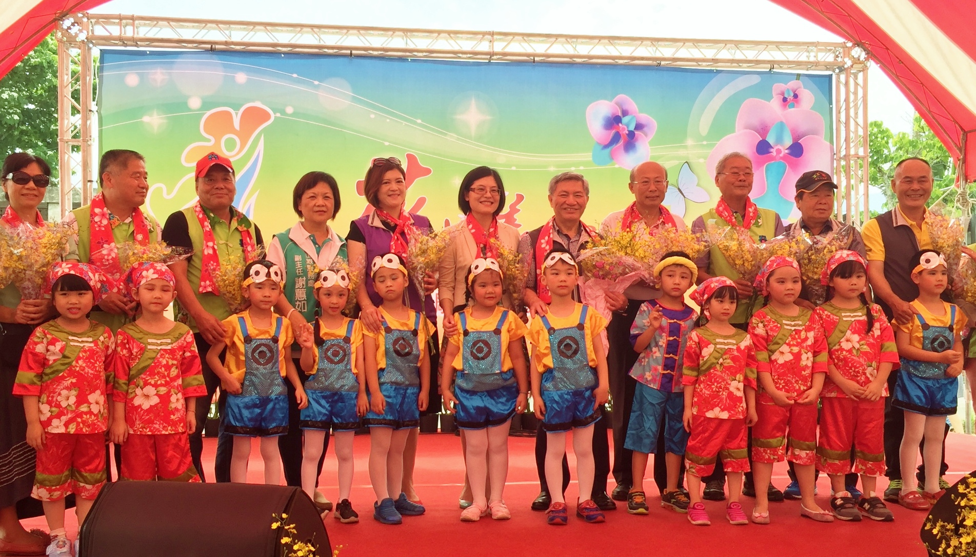 今日活動結合2018台中世界花卉博覽會,設有花卉展售市集,而東勢幼兒園小朋友們更貼心上台獻花,現場花團錦簇、綠意盎然景象;副市長張光瑤、客委會主委劉宏基、勞工局局長黃荷婷、市議員蘇慶雲、東勢區長徐佩鈴都親自出席活動,而立法院副院長蔡其昌也派代表出席表達支持。