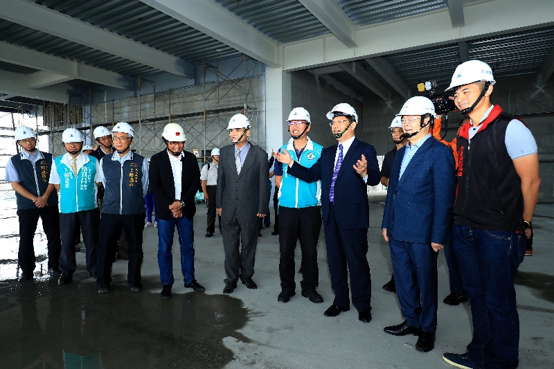 海洋生態館由市府建設局負責興建,今日舉行上樑典禮,林市長在建設局長黃玉霖陪同下主持祈福儀式,祈求工程平安順利;林市長也逐一視察工地各樓層空間,了解建置進度與規劃雛形,包括市議員王立任、顏莉敏、何敏誠等人也到場觀禮。