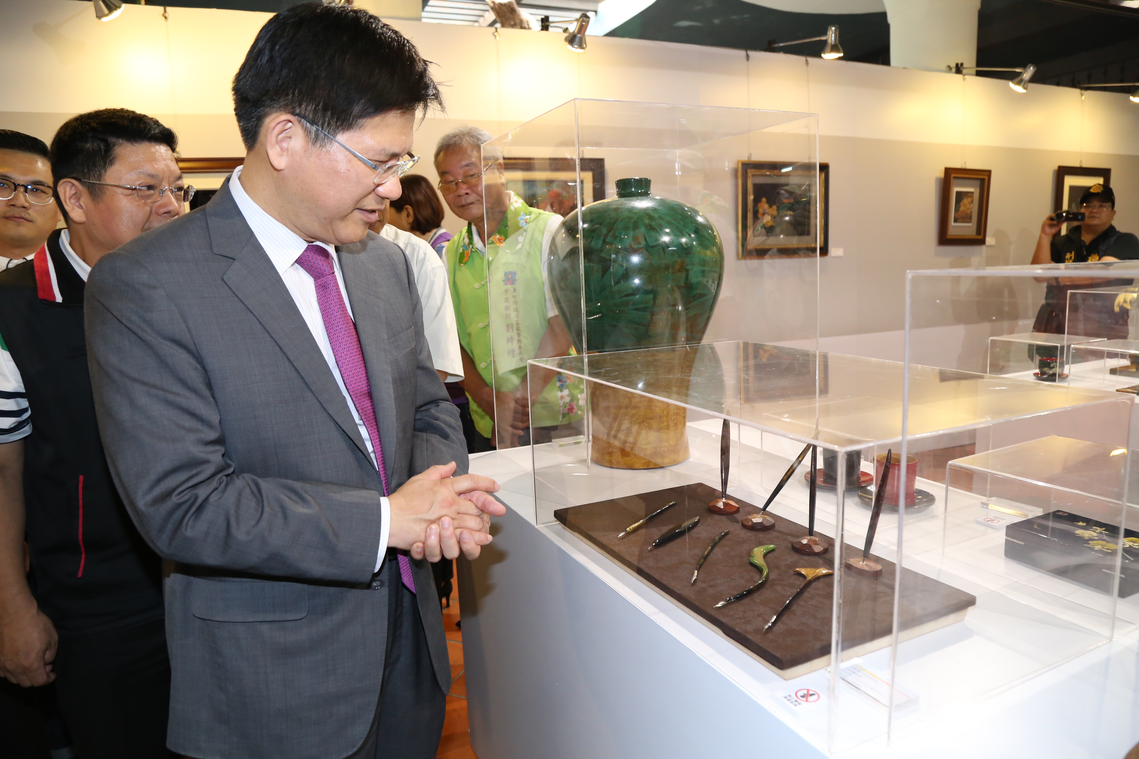 市府文化局今(19)日舉行開幕活動,由林市長、文化局副局長施純福、客委會主委劉宏基、東勢區長徐佩鈴等人進行啟動儀式,共同揭開以台中市盛產的四大花卉百合、火鶴、文心蘭、唐菖蒲為主題的精采漆畫,代表工藝文化的發揚與傳承,迎接2018台中花博到來;立法委員蔡其昌服務處代表、立法委員江啟臣服務處代表、市議員蔡成圭服務處代表、蘇慶雲服務處代表也到場致意。