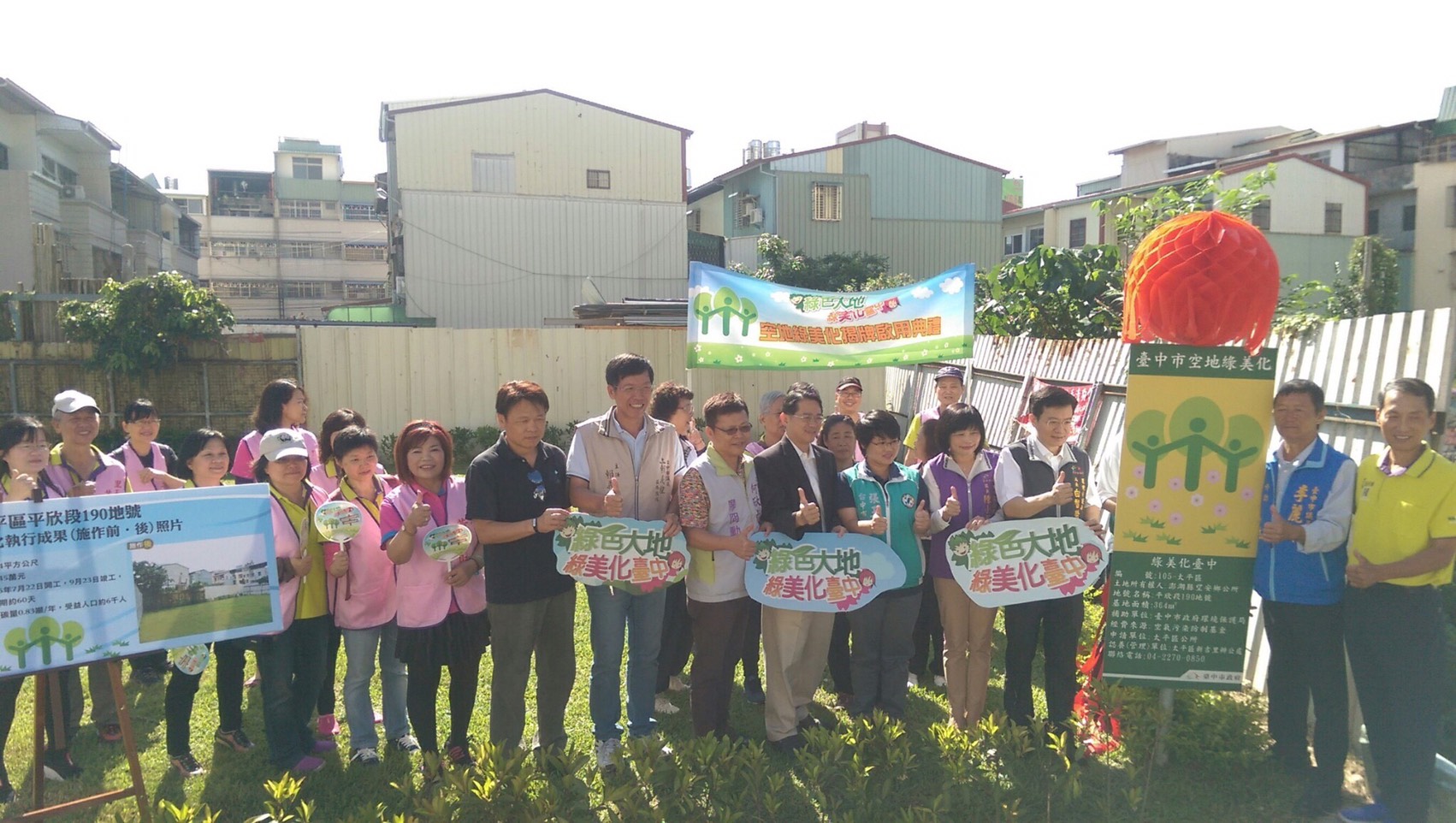 「太平區平欣段190地號南側空地綠美化揭牌啟用典禮」由環保局長白智榮、太平區長陳小菲、研考會副主委曾能汀、市議員張玉嬿、何明杰、新吉里長黃天財、立法委員何欣純服務處代表、市議員李麗華、賴義鍠議員服務處代表等人共同見證,氣氛熱鬧。
