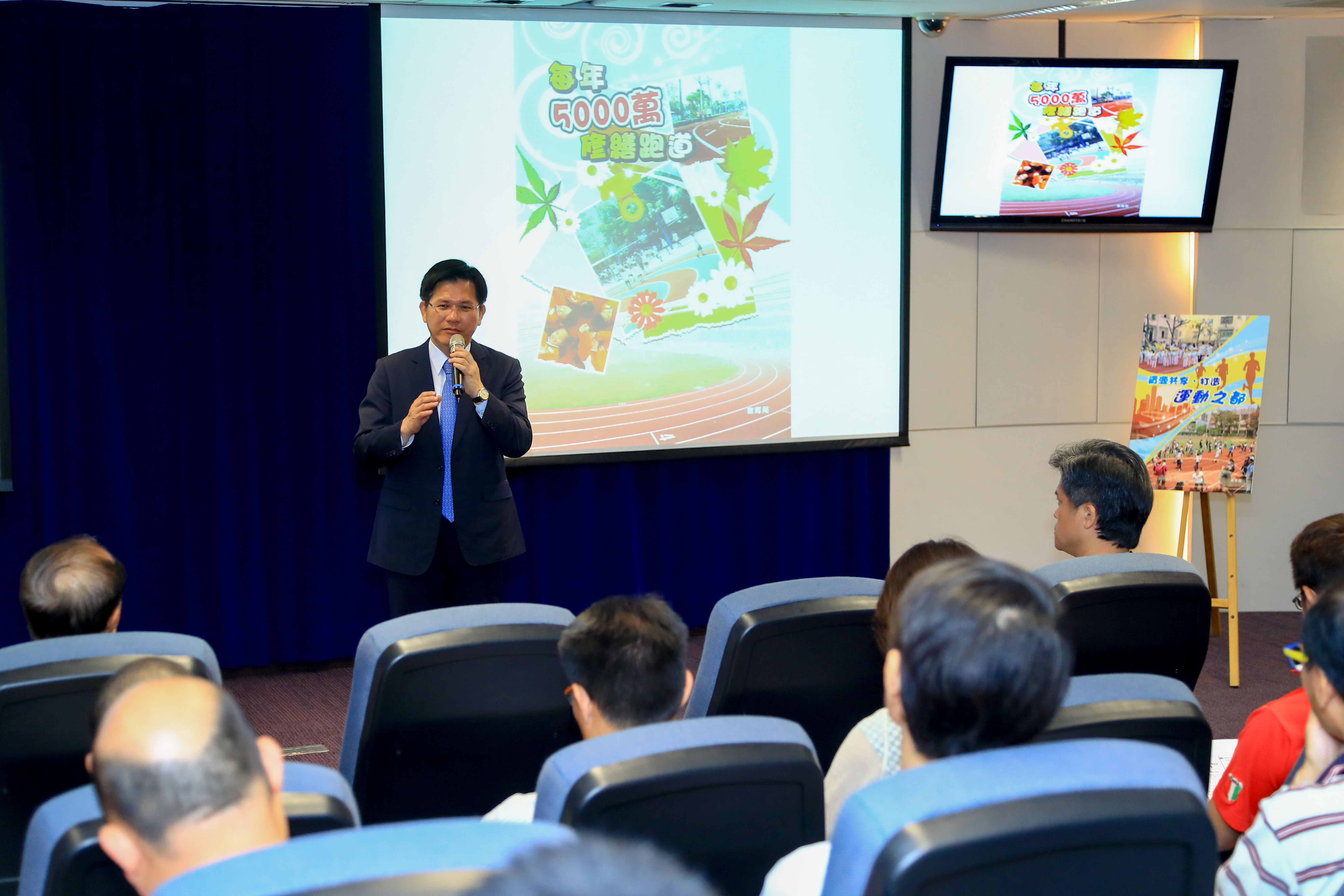 「台中市各級學校跑道整建工程說明會」今(24)日在台灣大道市政大樓舉行,包括林市長、教育局長彭富源、多位國中小校長、學生家長等人都共同與會;並由中興大學教授兼中華民國田徑協會場地認證小組召集人張惠峰,針對田徑跑道相關施工規定進行簡報說明,協助各校完善跑道環境。
