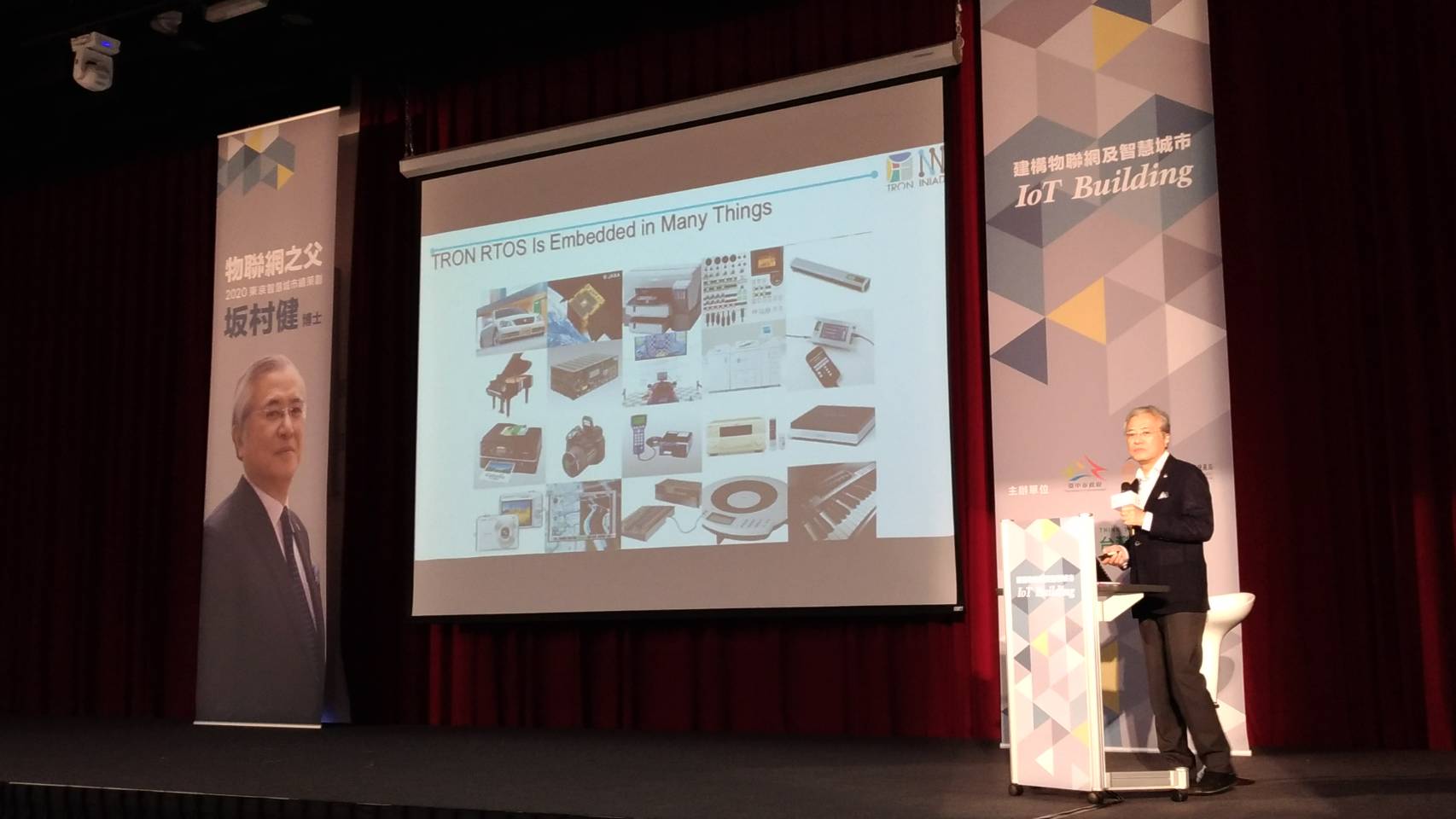 此外,坂村健博士所研發的TRON(The Real-time Operating system Nucleus)內嵌式作業系統,大大加快電腦運算速度,成為日本汽車、家電必備系統,安裝到全球30~40億台家用產品中,已超過微軟Windows的普及程度,也由於他對國際電信發展深具影響力,榮獲2015年聯合國ITU國際電聯獎,表揚他是150年來,對人類科技最有貢獻的六大影響人物。