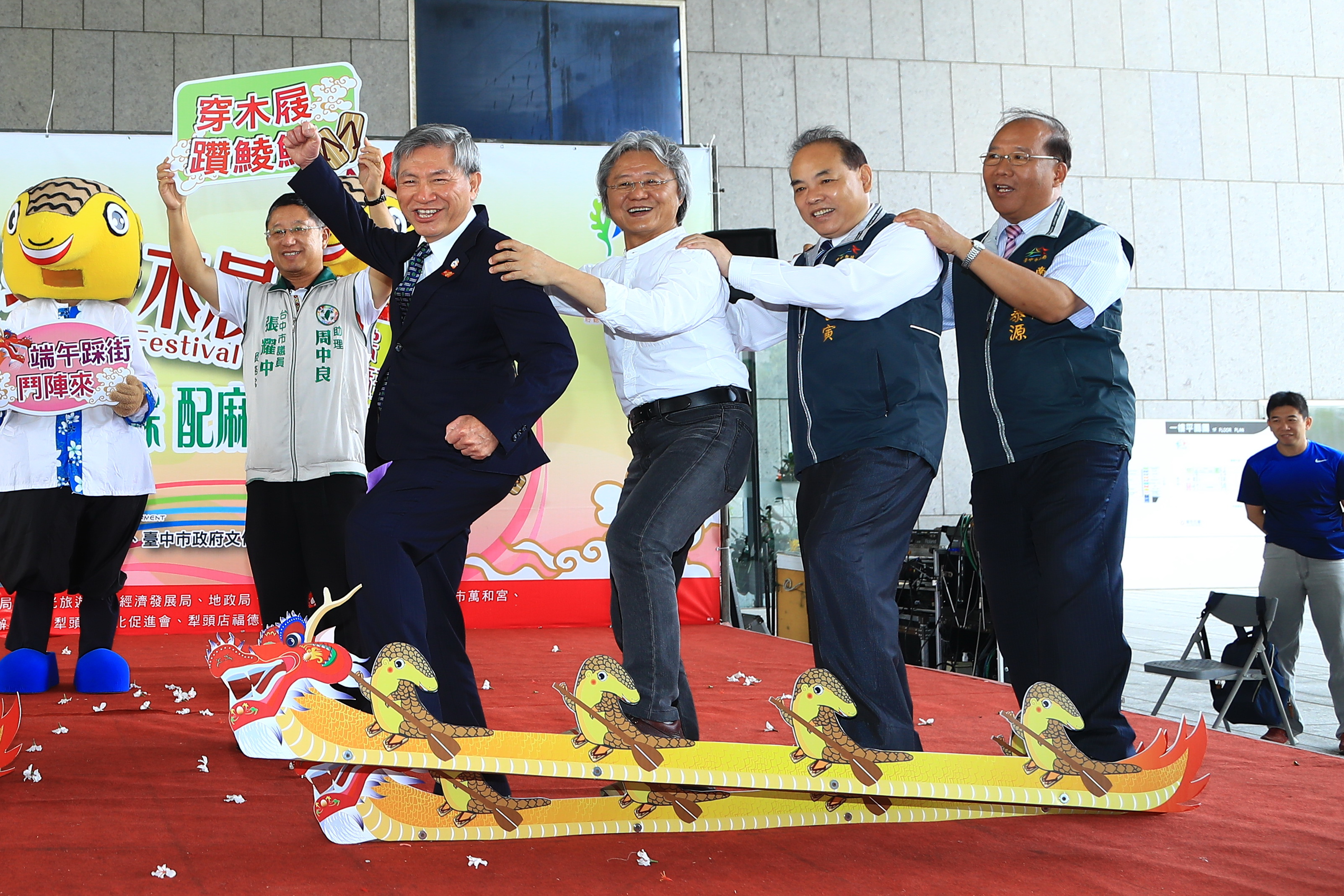隨後張副市長、民政局長蔡世寅、文化局長王志誠、市議員劉士州、南屯區長程泰源、萬和宮董事長蕭清杰等人也穿上木屐「躦鯪鯉」,宣告活動開跑。包括立法委員張廖萬堅服務處代表、市議員朱暖英服務處代表、市議員張耀中服務處代表也到場共襄盛舉。