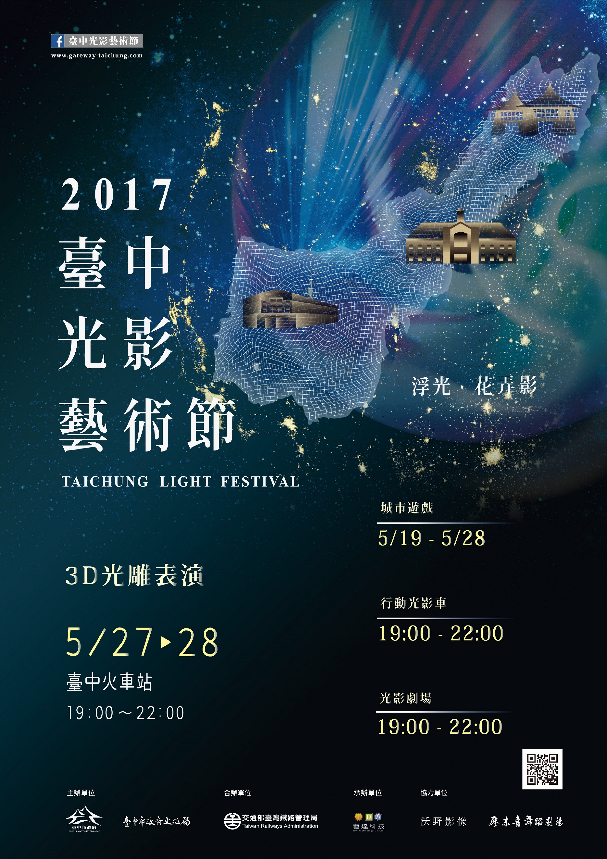 今年光影藝術節結合台中火車站百年慶,串聯當年火車站落成至今的歷史記憶,規劃豐富的3D光雕秀,融入文心蘭、劍蘭、火鶴、百合等花卉光影,以「浮光‧花弄影」為主題的3D光雕秀包括三個段落,第一個段落以詩詞文字為主要意象,透過知名詩人林癡仙、林獻堂作品及台灣竹枝詞等,搭配絃樂、流動瀑布等視覺效果,營造百年記憶在歷史中流動的感受;第二個段落以時光旅程為主題,搭配輕快電子音樂呈現台中美麗街景;第三個段落主題為「奼紫千紅」,搭配西班牙舞曲,透過文心蘭、劍蘭、火鶴、百合等花卉光影,迎接2018台中世界花卉博覽會。