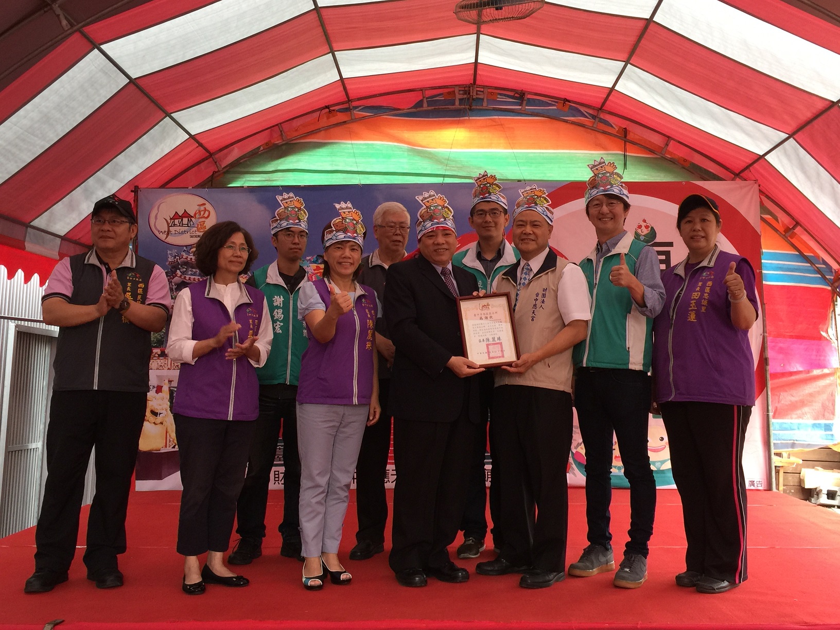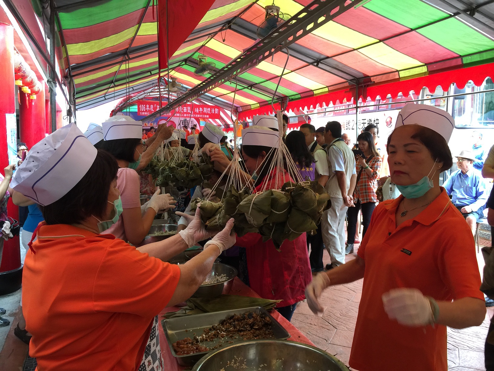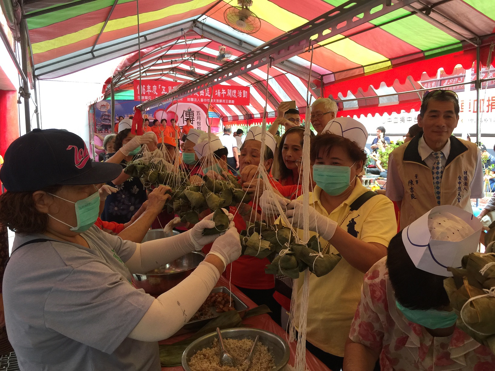 台中市西區區公所與財團法人台中市應天宮蘇府王爺廟今(26)日共同舉行「五月包粽 傳愛西區」活動,透過200名志工將愛心粽分送區內500餘戶弱勢家庭,市府民政局長蔡世寅代表市長林佳龍致贈感謝狀,表彰應天宮常年扶弱濟貧善舉,讓社會貧困、老弱及邊緣戶歡度佳節。