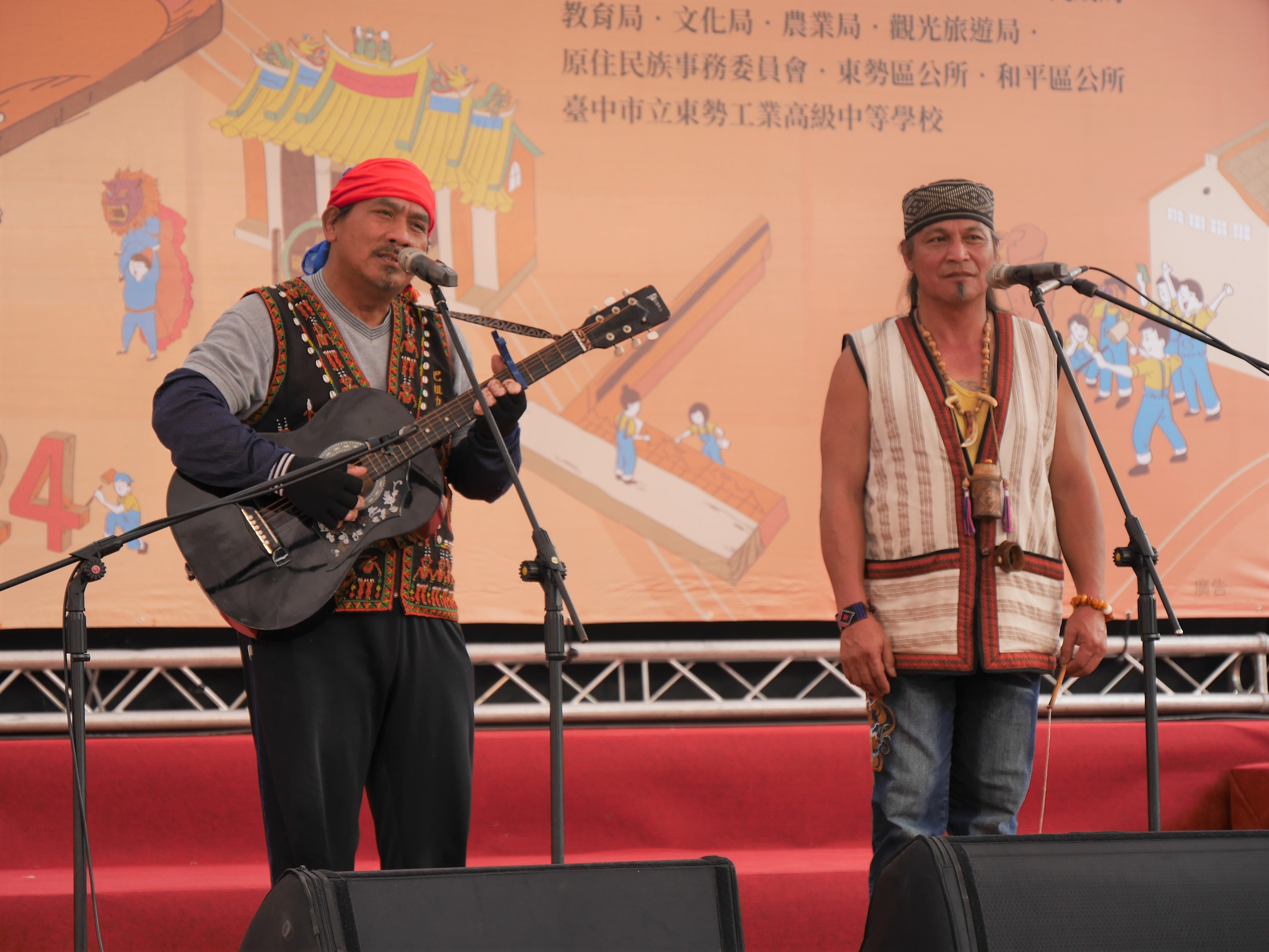 客委會昨(28)日在東勢客家文化園區邀請排灣族原住民黃國佑(沙古流˙巴粗力)、泰雅族口簧琴國寶大師鄭保雄,表演原住民特色歌曲及口簧琴技藝,並由中國功夫協會演繹客家流民拳,為今年台中巧聖仙師文化祭圓滿劃下句點。