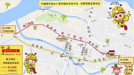 建設局表示,石岡區和盛街位於中129線起點,為石岡新社等區往返臨近區域主要交通動脈之一,但長期通勤公車及大型重車反覆輾壓影響,路面產生疲勞性裂縫、路基龜裂損壞及部分側溝與溝蓋和路面出現落差;為此,市府實施從石岡區豐勢路至新社區中正街2.2公里路平,但因該路段瓦斯老舊管線配合路平期程辦理汰換,故等待路面靜置穩固後,市府將自5月31日起一連6天每晚8時至隔日早上6時封閉道路施工。