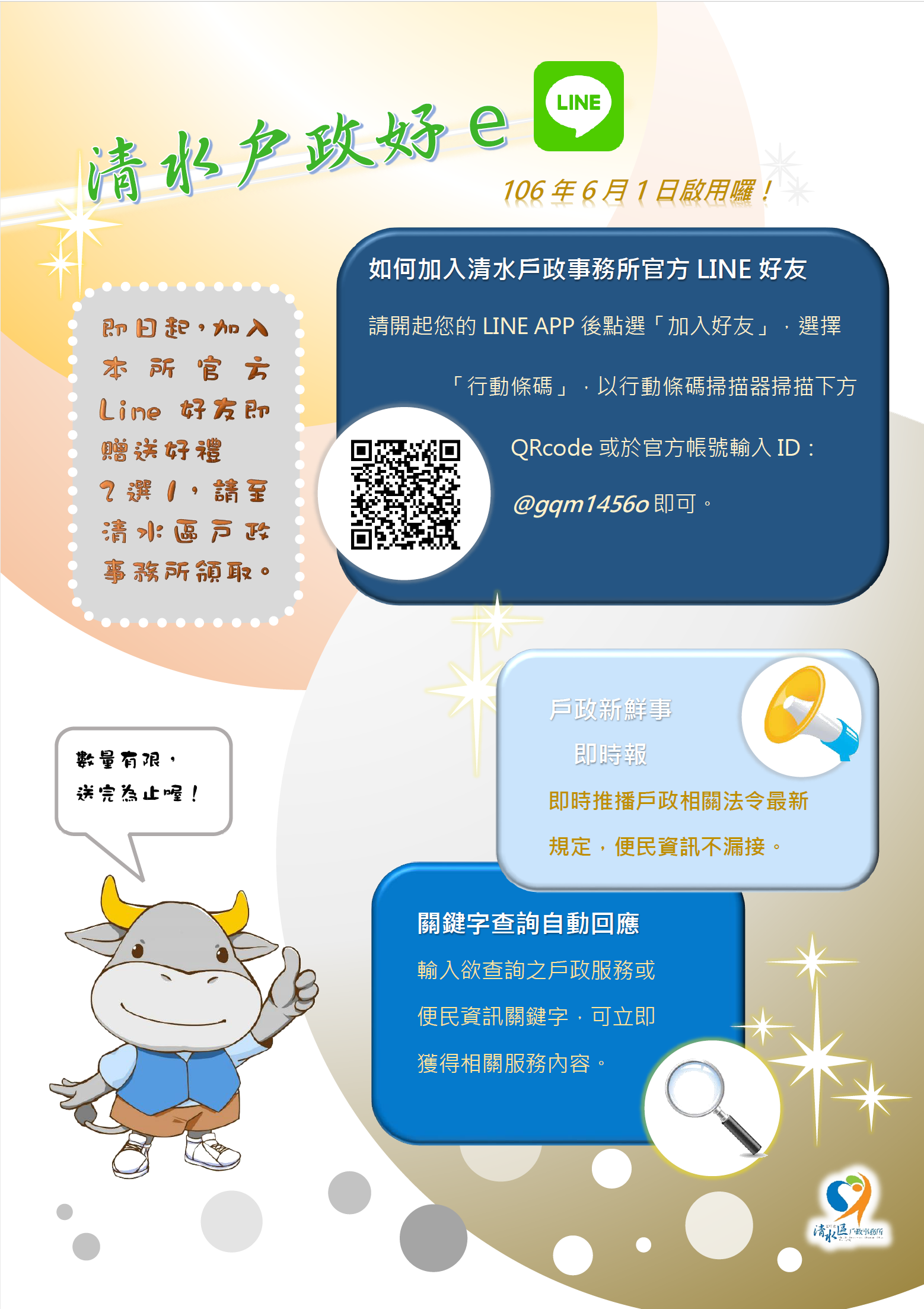清水戶政Line官方帳號上線  戶政資訊隨手得