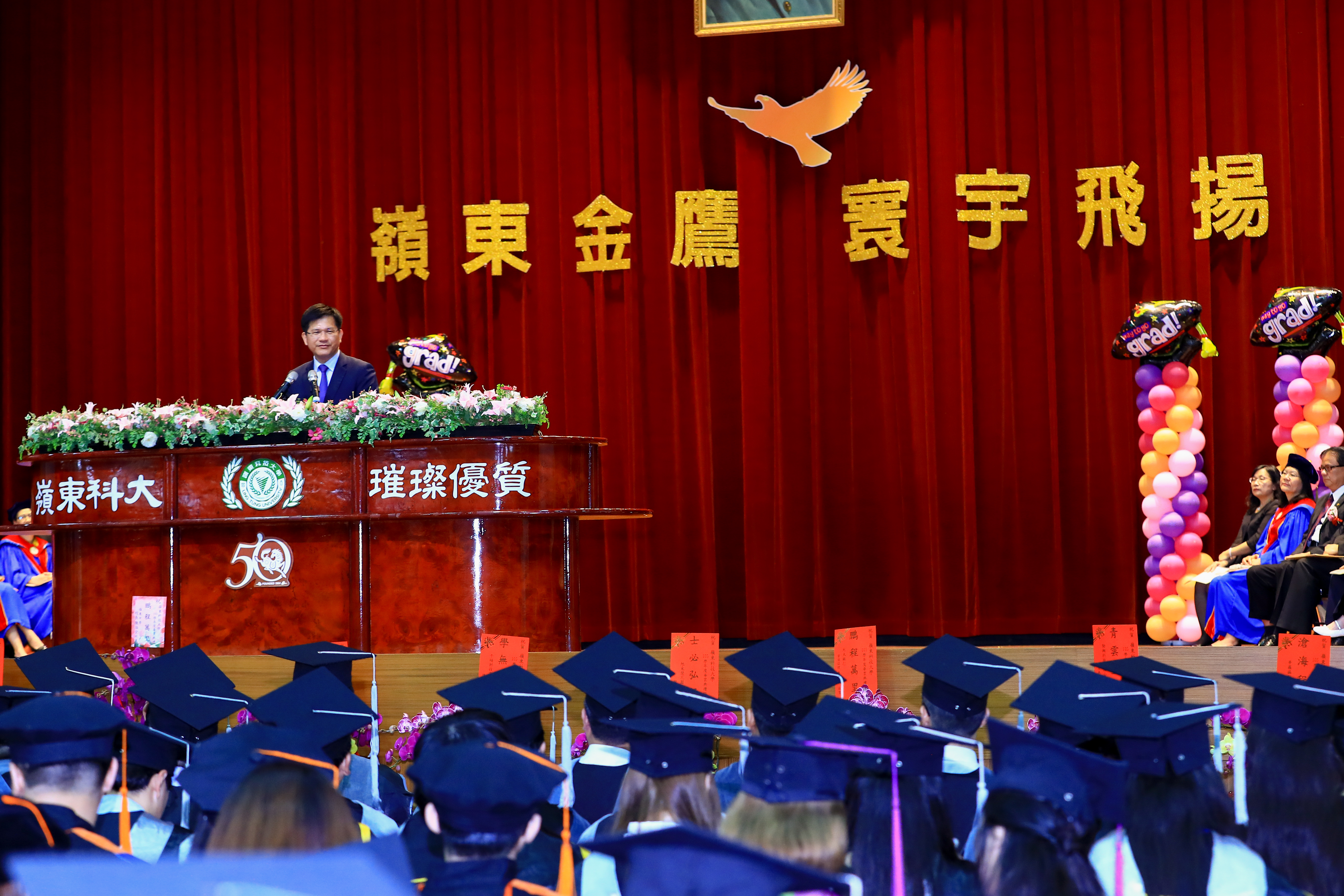 嶺東科大校長趙志揚也勉勵畢業生也懂得感恩、惜福,如此才能讓自己不容易驕傲,永保謙和的心,才能適應未來各種競爭;他也期望畢業生能建立自我學習的能力,永遠保持自身價值。(6/4*13)*教育局