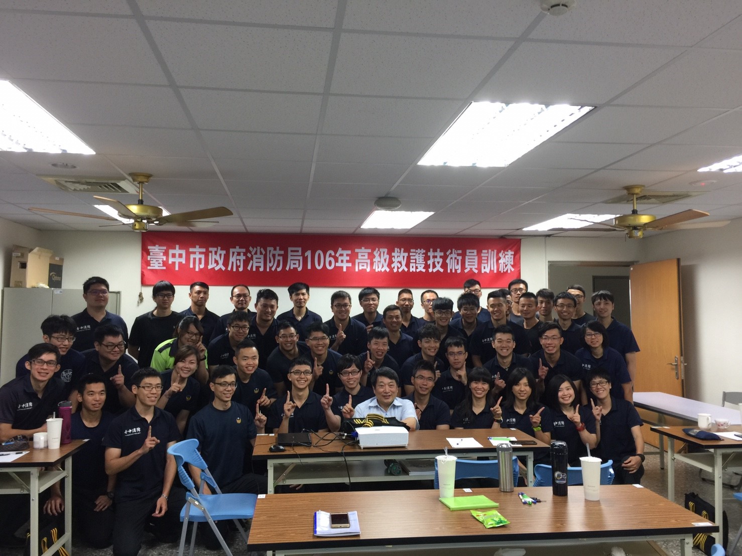 開訓典禮於今日上午8時在春社分隊舉行,消防局長蕭煥章特別到場勉勵學員,希望學員在長達7個半月的訓練過程中,能習得更多的救護專業知識、更加熟練各項救護技能,並對救護工作有更深一層的認知及自信,才能在回到工作崗位後立即貢獻所學,進而全面提升到院前緊急救護服務品質及民眾滿意度,使大台中地區居民的生命與健康獲得更完善的保障。