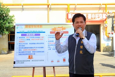 林市長強調改善空汙人人有責,空氣污染已成為人民公敵,台中市有1/3左右汙染來自於固定汙染源,除了像台電、中油等超大型汙染源外,還有很多中小型工廠使用燃油鍋爐,將燃料改成燃氣的話,對於空汙減量效果幾乎是百倍。