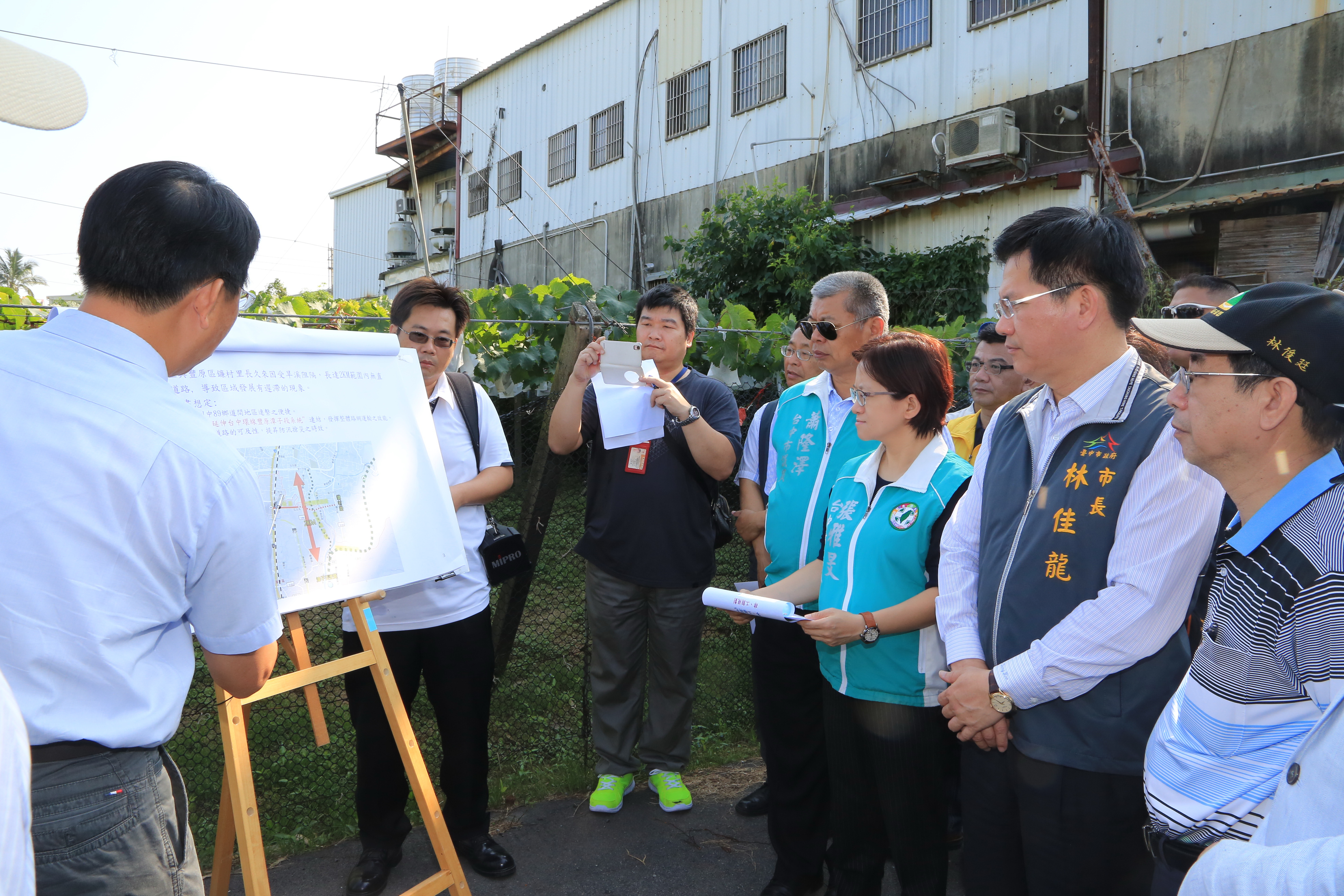 市長林佳龍今(9)日在建設局長黃玉霖陪同下,前往視察並聽取內政部營建署中區工程處簡報工程進度,內政部營建署中區工程處副處長林俊廷、豐原區代理區長唐益滄、潭子區長劉振村、市議員翁美春、張雅旻、蕭隆澤、陳清龍,以及立委洪慈庸、江啟臣、市議員張瀞分服務處代表也到場關心。