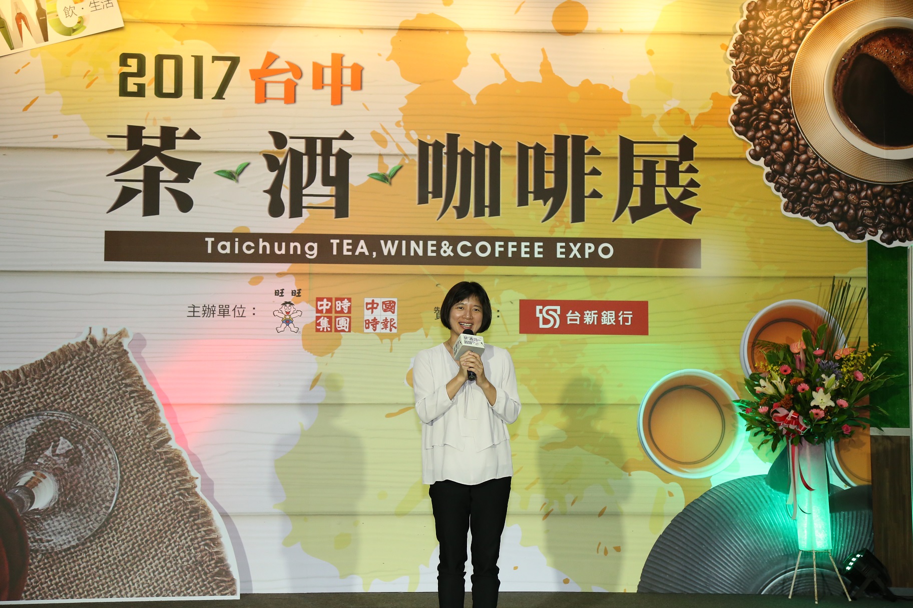 由中國時報主辦的「2017台中茶酒咖啡展」,今日在中時國際會展中心登場,展覽以「飲生活」為主題,吸引逾百個攤位參與,盼透過優質參展廠商展出商品及體驗活動,用生活化的方式向民眾傳遞茶、酒、咖啡的美好滋味;包括林副市長、行政院農糧署中區分署長王安石、南投縣副縣長陳正昇、台灣菸酒公司副總經理張黎明、彰化縣農業處科長蕭麗玲等人均到場共襄盛舉。