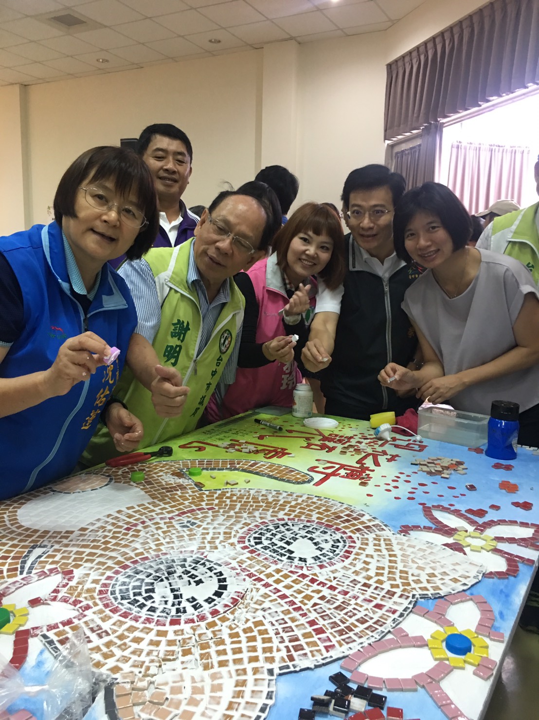 今日開幕式安排音樂舞蹈表演、環保藝術創作展覽、有獎徵答、摸彩、環保闖關攤位集戳章兌換宣導品等豐富活動,藝術家們也邀集現場貴賓共同進行藝術創作,以馬賽克拼貼作品「迎花博 貼石虎」,逗趣可愛;另外,今年也推出深受市民喜愛的親子木作DIY以及首度舉辦的「花博蓋讚」瓶蓋創意畫集體創作。
