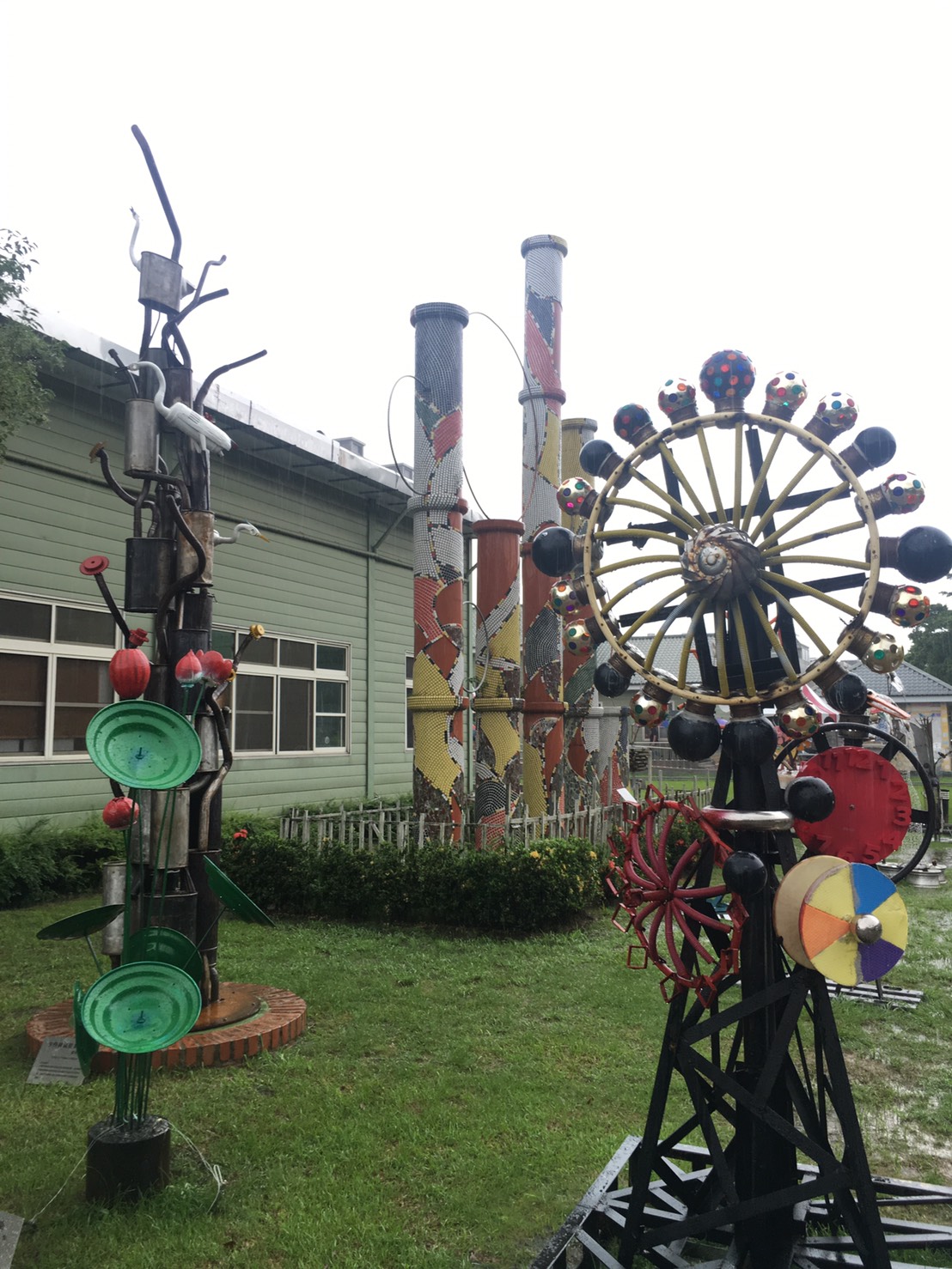 現場設有藝術家葛映惠用回收的鋤頭、農具、牛鈴組成「豐收的季節」;李明憲用鐵絲、鐵棍和風扇構成「紅塵心事」;余燈銓用鋼筋、鋁線、玻璃、占板組合成有趣的「桃花舞春風」;鐘斌效用廢鐵板、鋼筋、人形模特兒和刺鐵絲組成「七嘴八舌」;邱泰洋以廢棄的鋼材、回收的塑膠線圈組成「花時間」等,都充滿巧思和創意,民眾看得驚嘆連連。