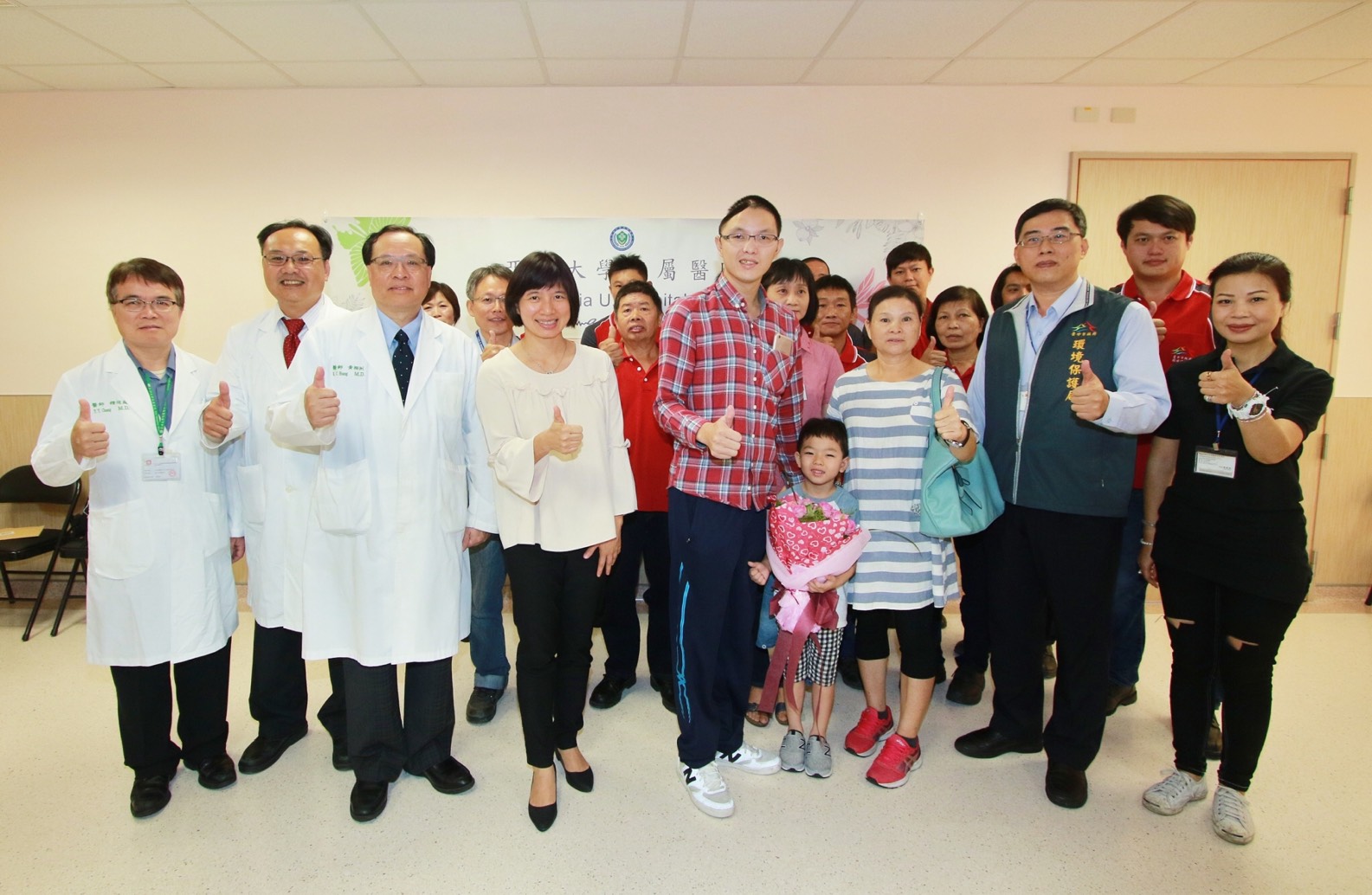 林副市長表示,今年母親節前夕,王俊昇不幸遭到酒駕車禍,當下傷勢相當嚴重,在亞大醫院全力搶救、親情支持及本身堅強意志力下,原本的重傷狀態,經過近40天的治療及復健,現在不僅能自行走動,還能正常講話,今天更要出院回家,感謝醫療團隊的努力,救回一條生命與一個家庭。