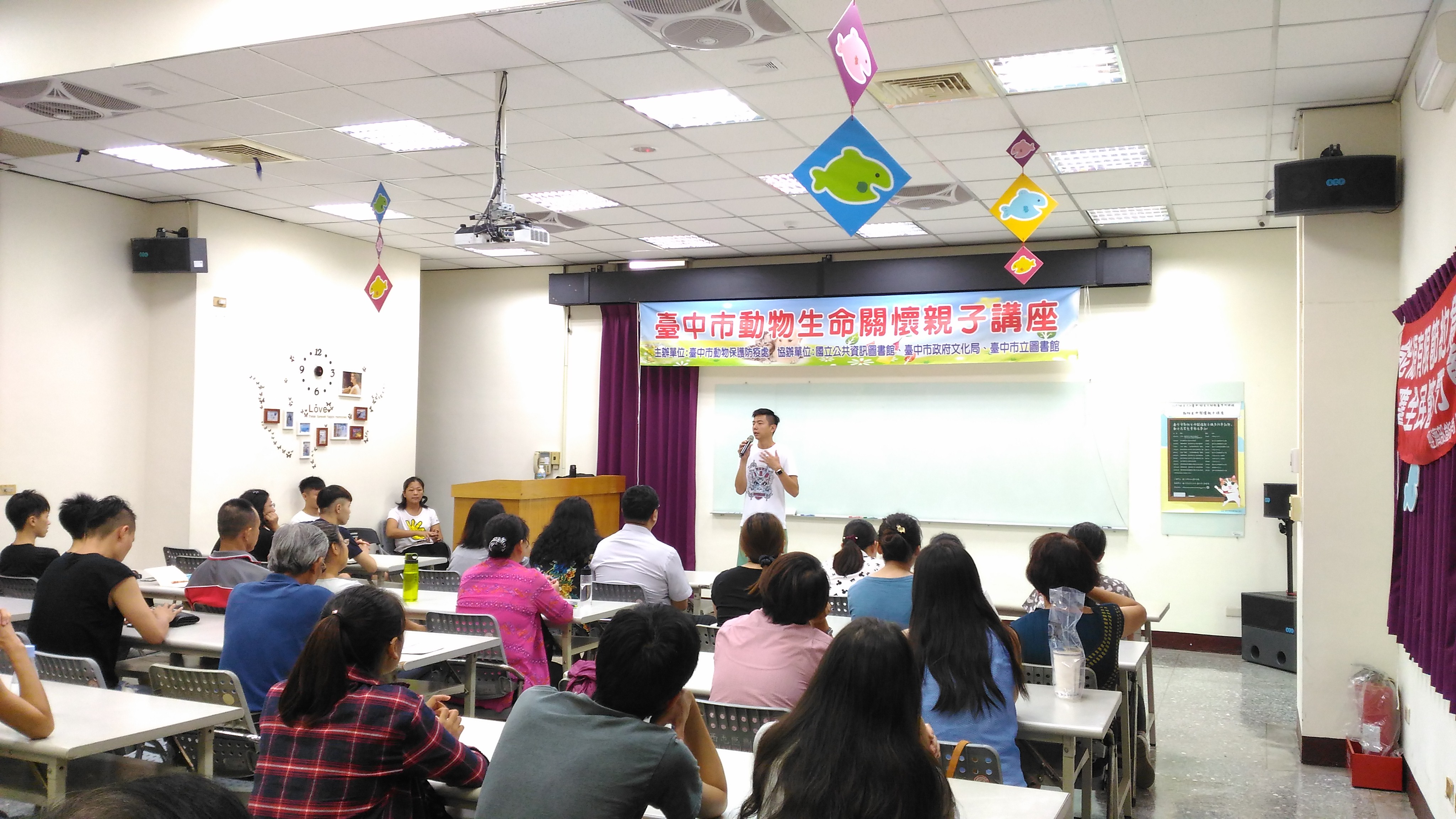 台中市動物保護防疫處今(24)日在市立圖書館西屯分館,舉辦「溝通無障礙,輕鬆矯正毛小孩壞習慣」講座,邀請Dog老師全能發展學堂負責人王昱智(熊爸)擔任講師,分享與毛小孩溝通的方法,讓飼主更加瞭解寵物,以改善亂叫或亂咬東西等壞習慣。
