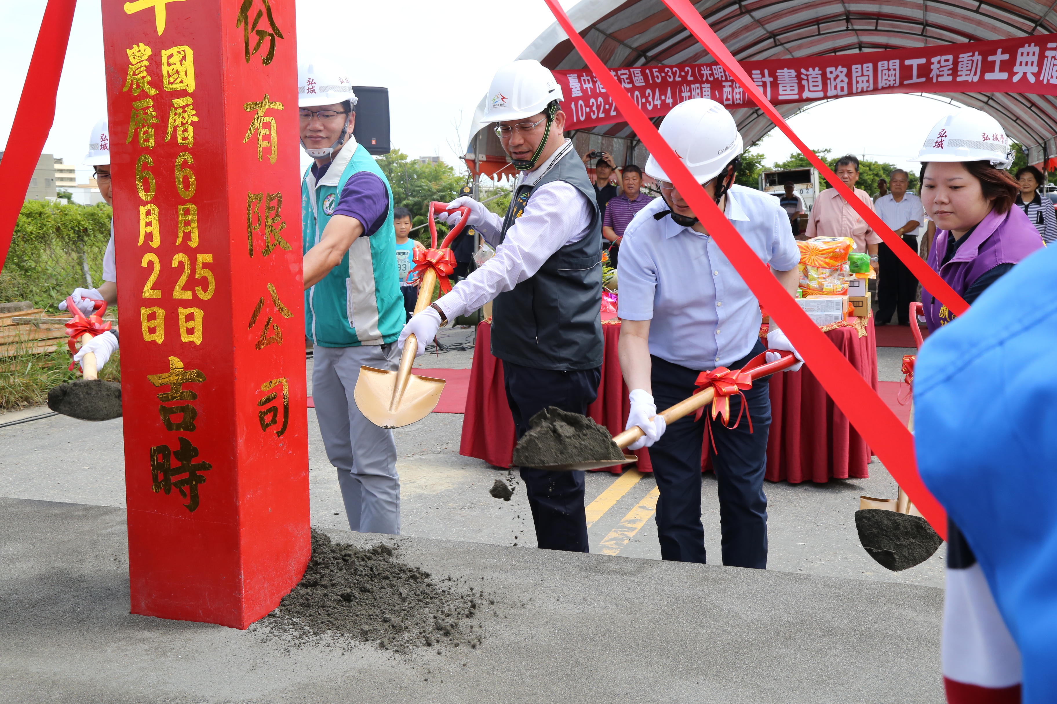 光明路及光明東西街動土典禮由林市長主持,市議員尤碧鈴、楊典忠、王立任、顏莉敏都親臨現場,副議長張清照亦派員前往,沙鹿區長李順彬、梧棲區長劉俊信及地方里鄰長也都共襄盛舉。