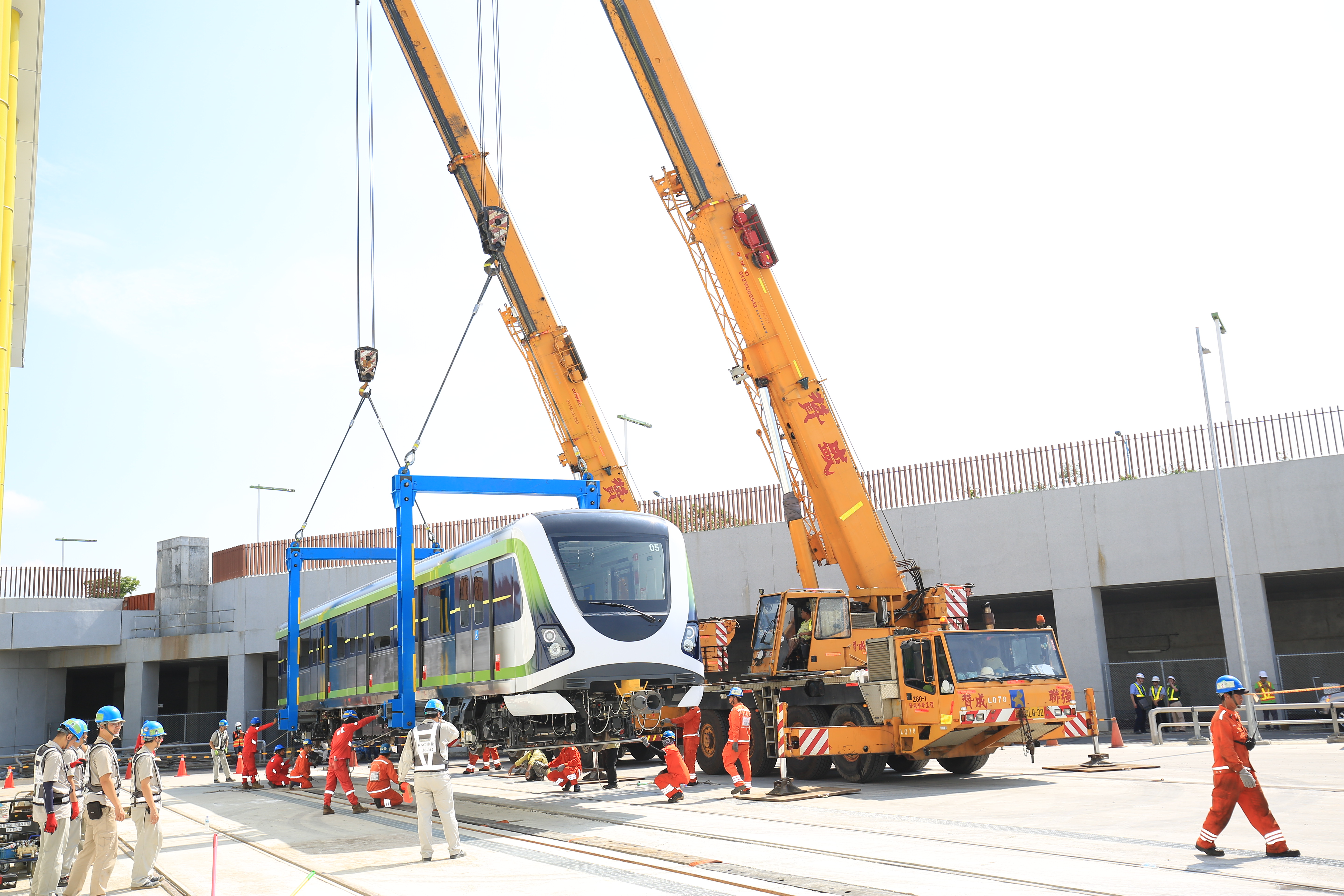今天台中捷運首列在台製造的無人駕駛電聯車運抵,象徵台中捷運邁向另一里程碑,接下來台灣車輛公司每月都將交一列車,預計9月可全數運抵機廠;另外於日本組裝的9列車,除了月前已到台中的2列車,其餘7列也將自9月份開始陸續運抵,18列車可望年底前可全數完成製造組裝,在接續完成車輛測試及機電系統整合測試後,於明年11月移交捷運公司進行試運轉。