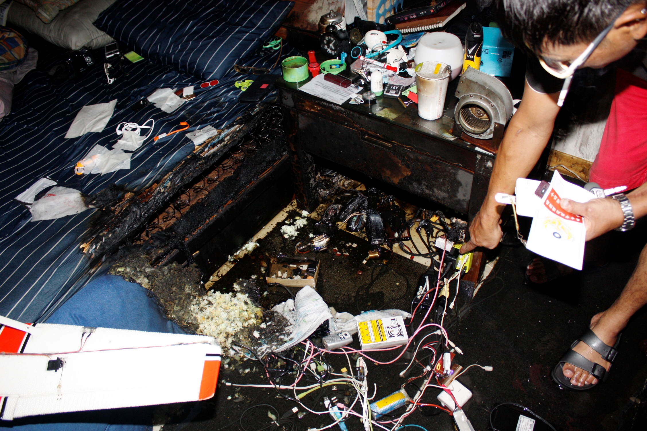 消防員撬開大門入室後發現,自動撒水設備確實發揮功效,火勢已然熄滅,燃燒面積約0.5平方公只,而臥床病人位處另一居室,關門就地避難未受火勢波及。