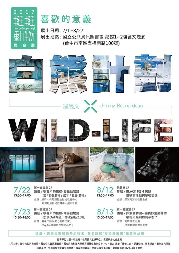 「白熊計劃 x WILD-LIFE 聯合展」自即日至8月27日在國立公共資訊圖書館一至二樓藝文走廊區展出,透過紀錄人類圈養白熊與其所處的人造環境以及屏科大的野生動物收容中心「沙林生命教育館」中動物們生活的模樣,將「動權」問題帶給觀者省思;7月至8月份期間也將分別陸續舉辦3場挺挺動物主題講座及1場生態紀錄影展活動,免費參加,採預先報名制;完整與持續新增資訊請見活動網站( http://bit.ly/2tjgb1c ),欲參加挺挺動物系列講座者請至報名網站( http://bit.ly/2sIXZQc )登記。