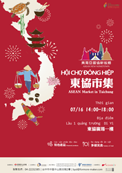 7/16下午2時於東協廣場辦理「東協市集」第二場活動,以越南特色為主題。活動現場除了有精采的卡拉ok演唱之外,亦有市集活動將展售越南特色小吃、越南特色服飾與越南文創藝品等,藉由多元的文化及創意商品的展售呈現豐富的越南文化內容。節目豐富而多元,希望藉由活動的進行,讓更多台中市民以及中部地區的移工朋友、新住民、僑生以及民眾都能更了解東南亞文化,以及感受其熱情與魅力!