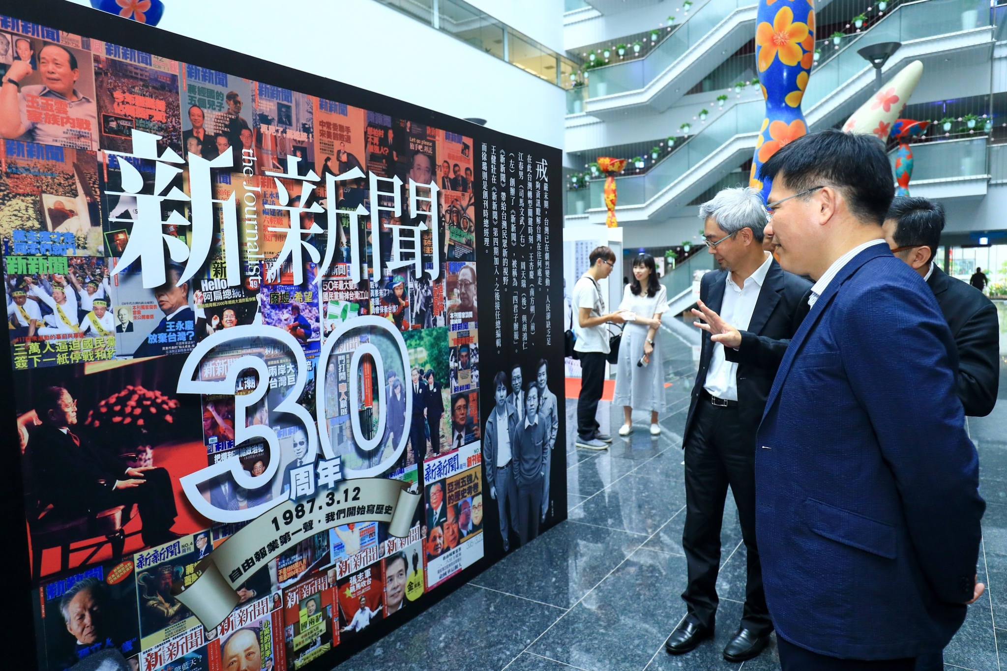 「新新聞」雜誌今(14)日於台灣大道市政大樓舉辦「新新聞而立前行三十週年攝影展」記者會,林市長在新聞局長卓冠廷的陪同下受邀出席,新新聞董事長張果軍、新新聞副社長陳東豪等人均到場為活動宣傳,並將珍藏近30年的歷史照片贈予林市長,紀念他過去爭取自由的不懈精神,包括市議員劉淑蘭、教育局長彭富源、民政局長蔡世寅等人也與會,立委徐永明、盧秀燕及市議員陳政顯也派代表到場關心,氣氛隆重熱鬧。