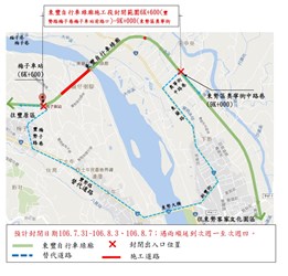 觀旅局呼籲,騎乘民眾屆時請依指示導引改行替代道路,並請減速慢行,注意安全;另為考量施工品質,施工期間倘遇降雨或其他不可抗力因素,封路期間將順延到次週一至次週四施工,完工後將提供更完善的自行車道設施,提升騎乘安全及舒適性。(7/14*8)*觀光旅遊局