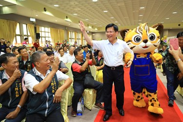 石虎家族的開心果「來虎弟弟」大玩偶更首次登場亮相,與林市長手牽手走入會場,比出愛心三連拍,吸引北屯、北區居民拿起相機猛拍照,氣氛輕鬆愉快,萌翻現場大朋友與小朋友。市府市政顧問、北屯區及北區各校校長、立委盧秀燕服務處及市議員曾朝榮、蔡雅玲服務處代表也到場關心。