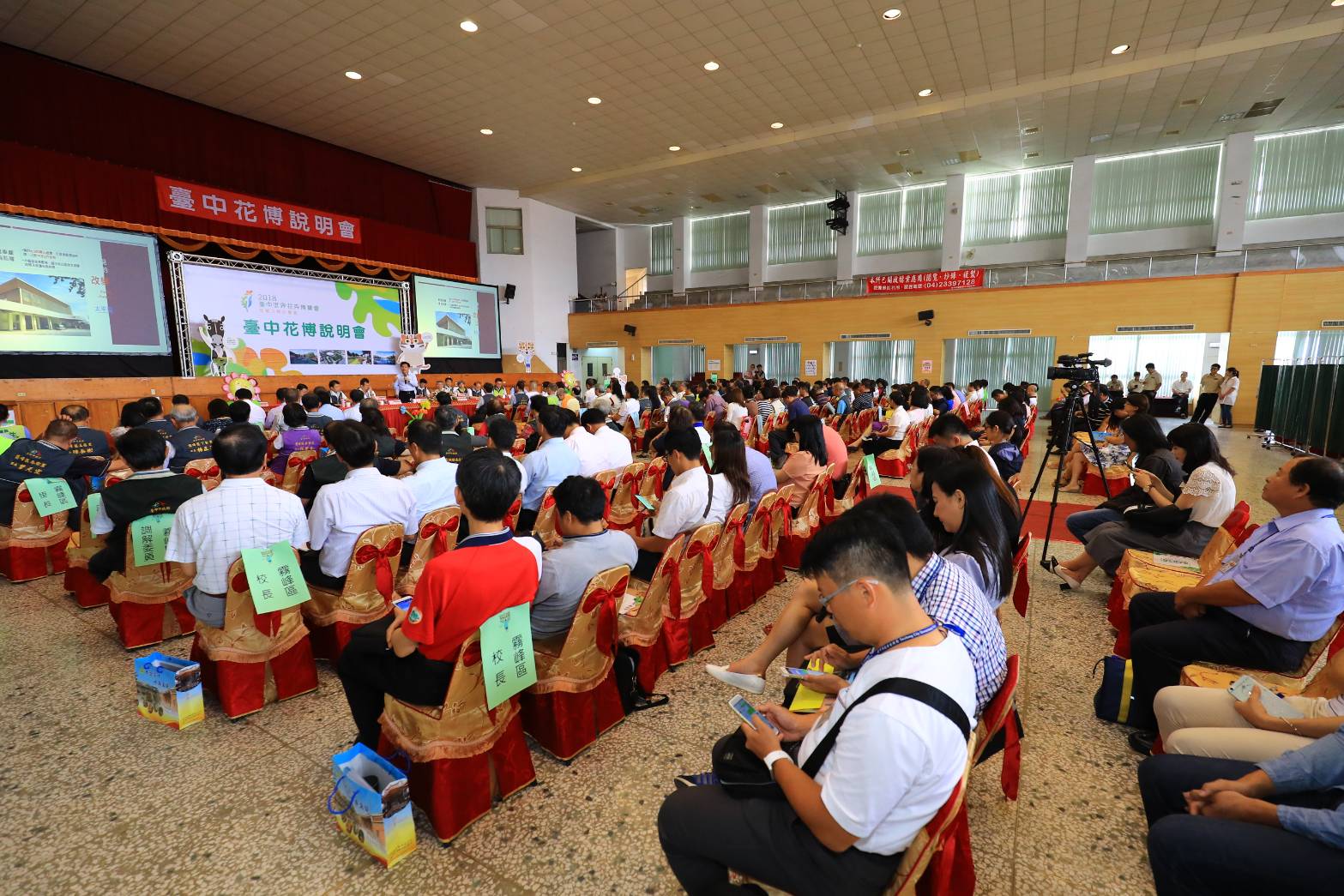 2018世界花博明年將在台中后里、外埔、豐原盛大展開,今年市政說明會特別結合花博一起舉辦,吸引霧峰、大里、太平區在地居民到場聆聽。市府新聞局現場播放花博宣傳動畫影片,透過超可愛的動畫設計,由石虎家族說明「花現GNP」(Green綠色、Nature自然、People人文)等花博主題緣由,趣味十足。