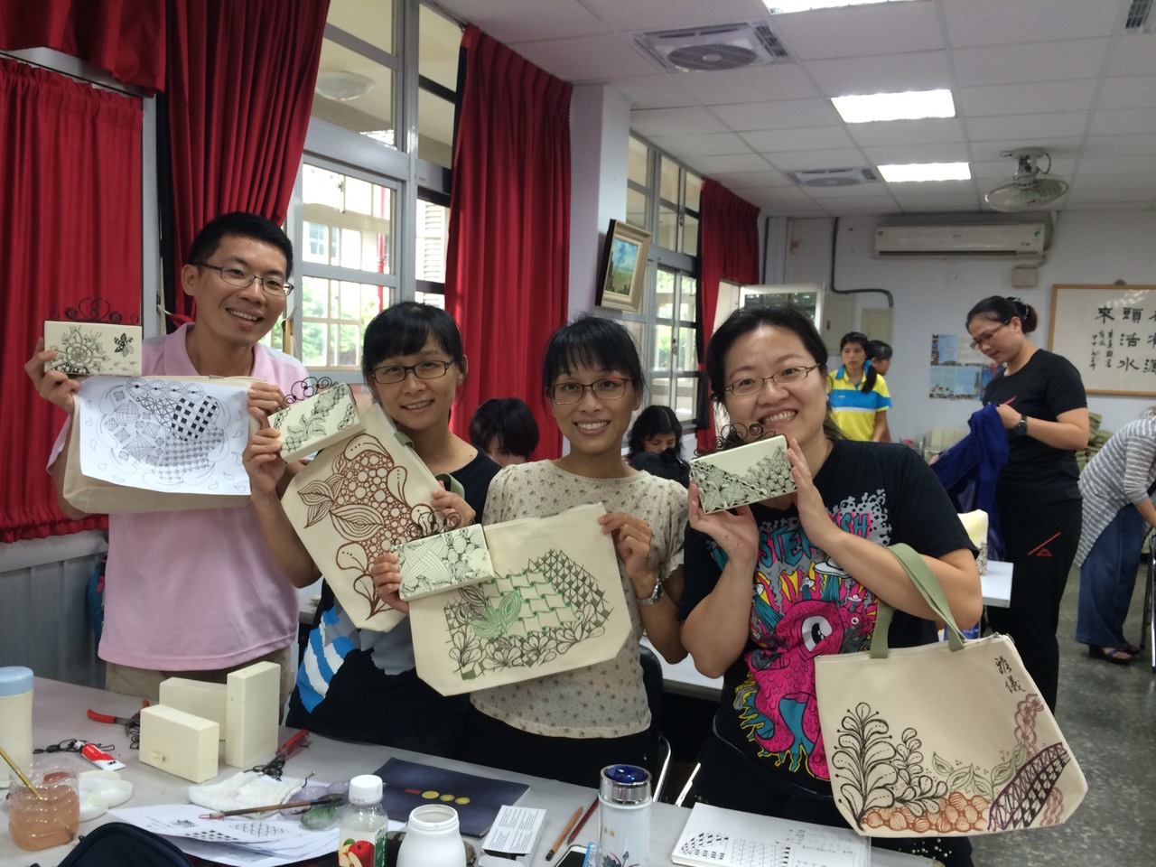 教育局表示,今日共16場涵蓋幼兒園至高中職教師的研習登場,日前也有一場創意纏繞畫研習剛結束,帶領約100位國中小教師完成手繪創作布包。南區樹義國小教師魏秀玲表示,平日因有課務壓力,能參加的研習活動有限,也較無法專注心力,她喜歡利用假日或暑假好好充電,校內同事還組成有37位成員的「熱血教師一起衝」群組,互相分享研習訊息、相揪參加,盼將研習所得轉化為實務教學,提升學生美感素養及心靈陶冶。