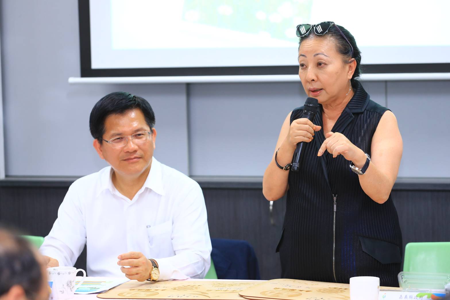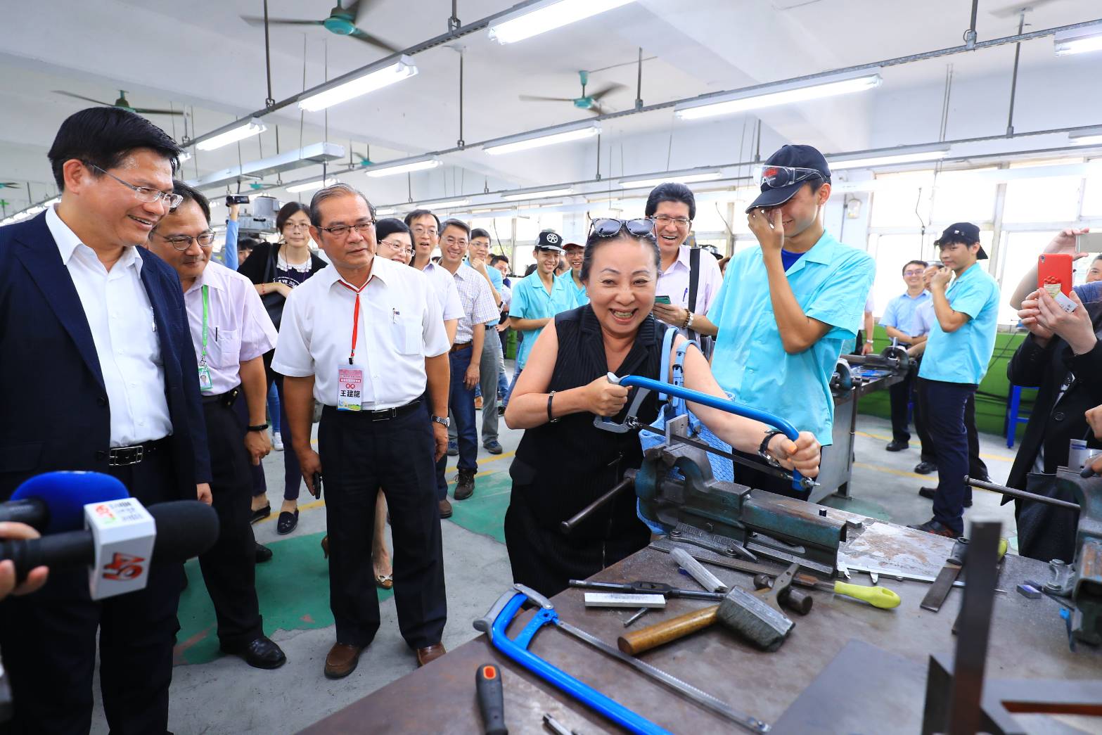 嘉義縣長張花冠等一行人今日下午抵達台中高工,林市長在秘書長黃景茂的陪同下前往迎接,並由教育局長彭富源進行台中技職教育推動進行簡報,台中高工校長黃維賢則帶領參觀校內實習工廠,勞工局長黃荷婷、農業局長王俊雄等人也到場與嘉義縣來賓交流互動,氣氛熱絡。