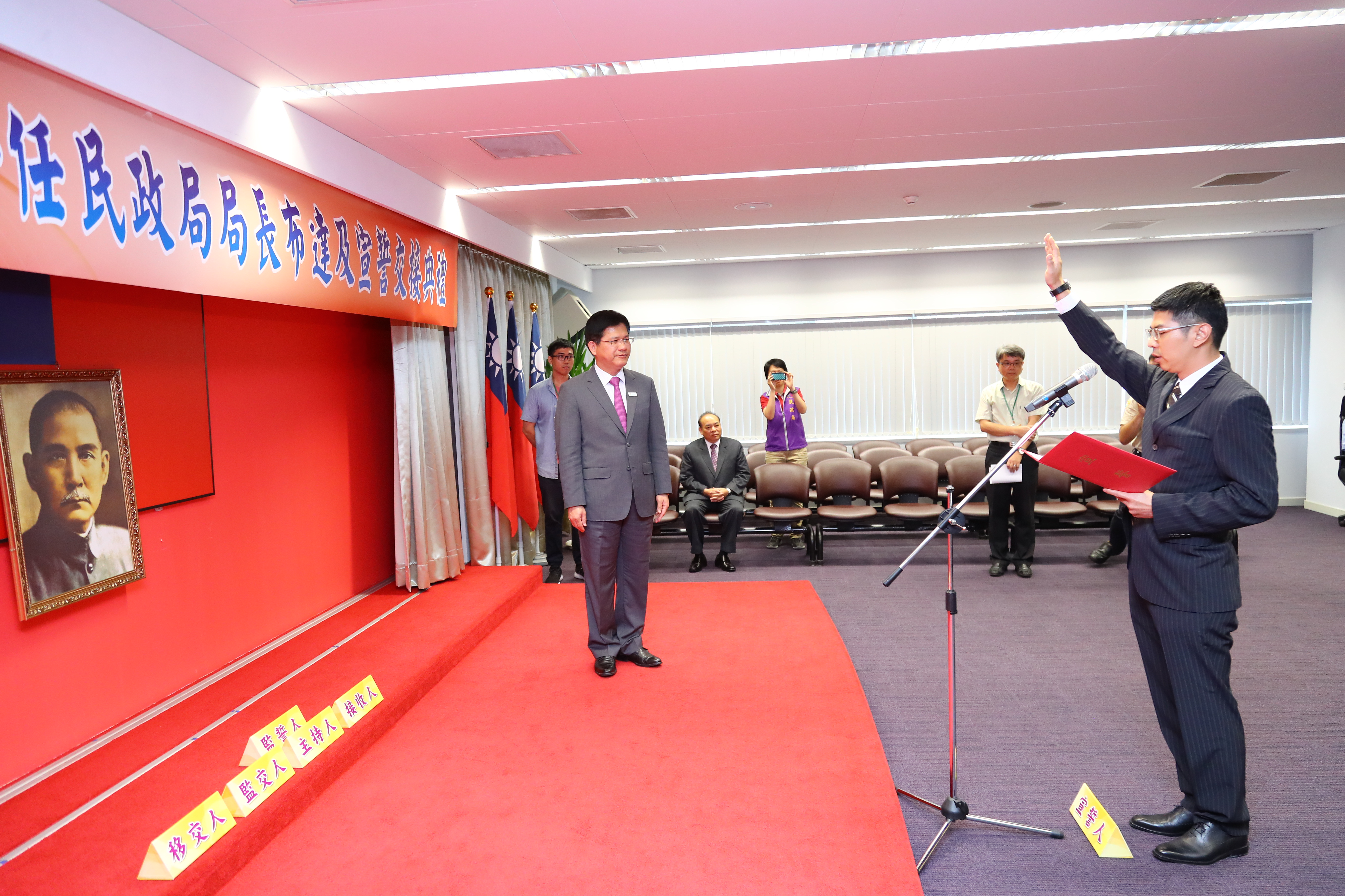 對於新任的民政局周局長,林市長也給予期許。他指出,周局長是台大政治學研究所畢業,是公共政策的專家,過去曾任國會辦公室主任、民進黨中央黨部青年部主任、民進黨台中市黨部的執行長,擅長民意調查分析,將有助於市府更了解民意。